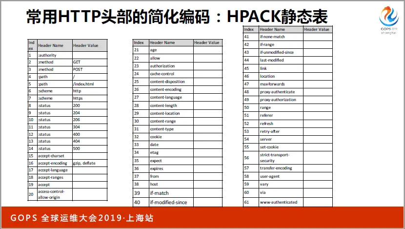 它统计了互联网上几年内的HTTP头部,按照每个字符出现的概率,重建huffman树。这样,根据规则,出现次数最多的a、c、e或者1、2、3这些字符就只用5个bit位表示,而很少出现的字符则用几十个bit位表示。