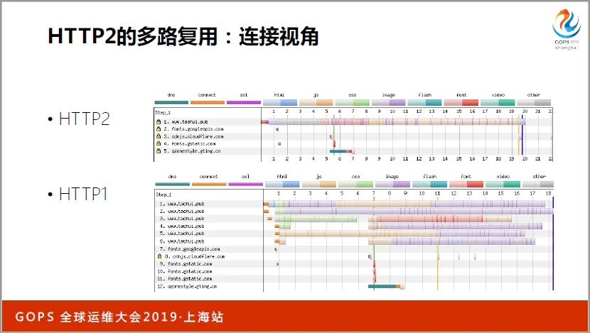 我特意让我的个人站点www.taohui.pub同时支持HTTP1和HTTP2,下图是连接视角上HTTP2和HTTP1的区别。