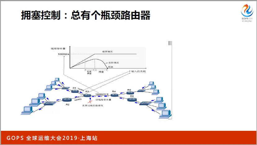 就像上图,R1的峰值网络是700M/s,R2的峰值网络是600M/s,它们都需要通过R3才能到达R4。然而,R3的最大带宽只有1000M/s!当R1、R2中的TCP全速使用各自带宽时,就会引发R3丢包。拥塞控制就是解决丢包问题的。