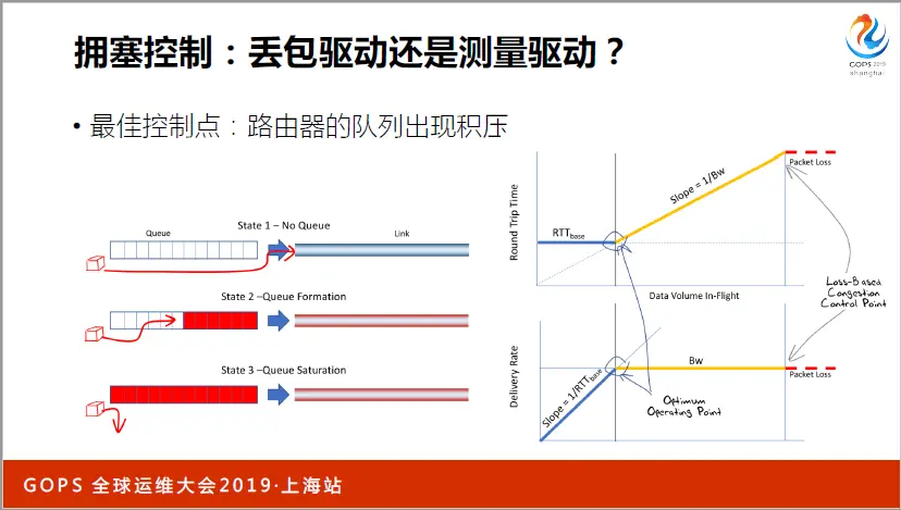 自1982年TCP诞生起,就在使用传统的拥塞控制算法,它是发现丢包后再刹车减速,效果很不好。