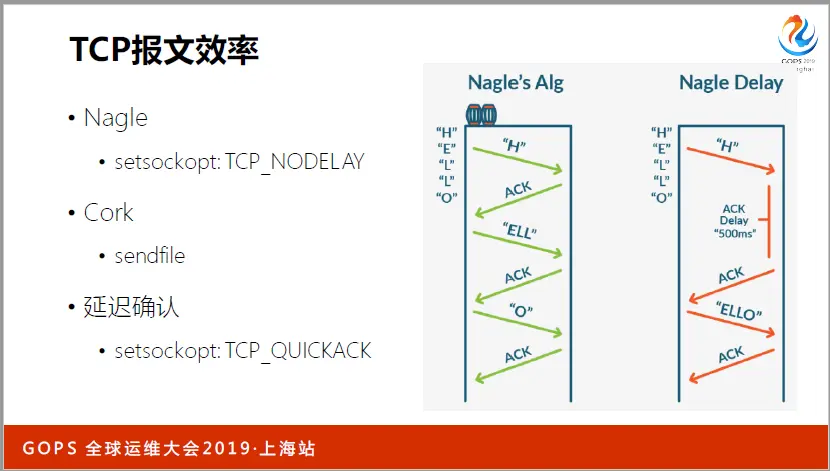 最后看下TCP的报文效率,它也会影响HTTP性能。比如开启Nagle算法后,网络中的小报文数量大幅减少,考虑到40字节的报文头部,信息占比更高。
