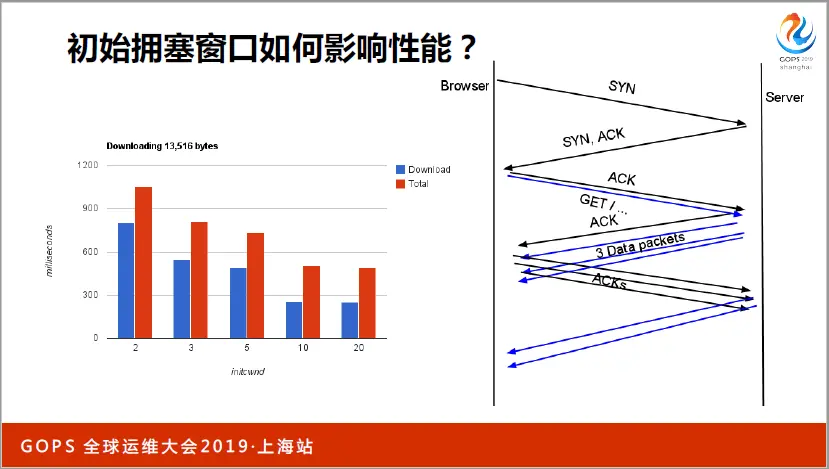 传输路径的第二个优化点是慢启动。系统自带的TCP协议栈,为了避免瓶颈路由器丢包,会缓缓加大传输速度。它的起始速度就叫做初始拥塞窗口。