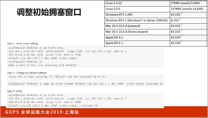 早期的初始拥塞窗口是1个MSS(通常是576字节),后来改到3个MSS(Linux 2.5.32),在Google的建议下又改到10个MSS(Linux 3.0)。