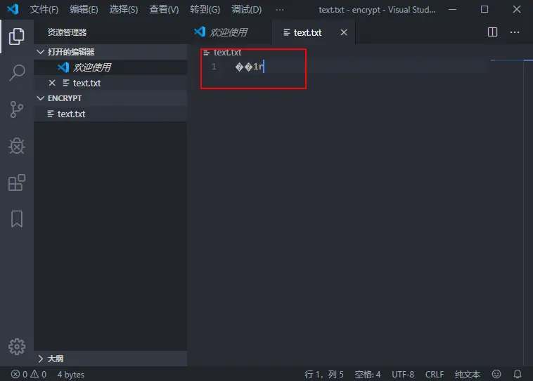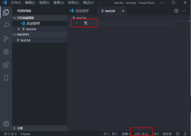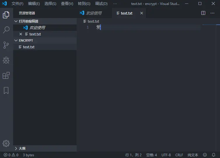 在VScode中新建一个test.txt文件,并输入一个“爱”字