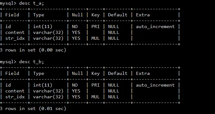 考虑以下两个表 t_a 和t_b