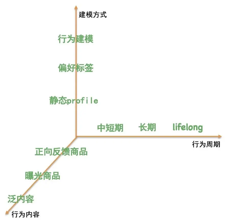 从模型分类的角度上来看,用户与商品的静态特征作用在于增强模型的泛化性,而用户实时行为的引入与建模,可以大大增强样本之间的区分性,显著地提升模型的分类精度。我们把用户建模的过程看作是对用户的信息抽象和信息组织的过程。