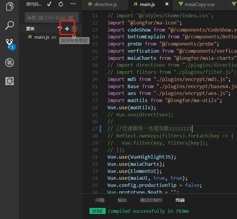 3、想拉取代码就需要把改动的暂存了(+ 号表示暂存,git add),并且 可以撤回暂存也 ,点击 ➖