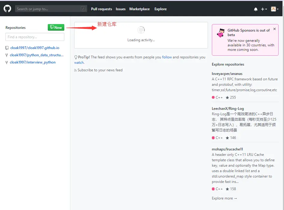 新建仓库