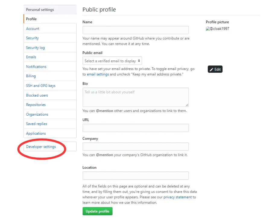 在页面最下方找到 Developer settings ,点击进入