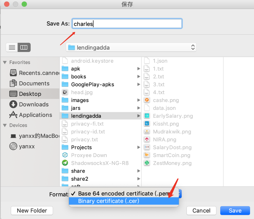 首先我们要导出Charles(或者Fiddler)证书,命名为charles.cer
