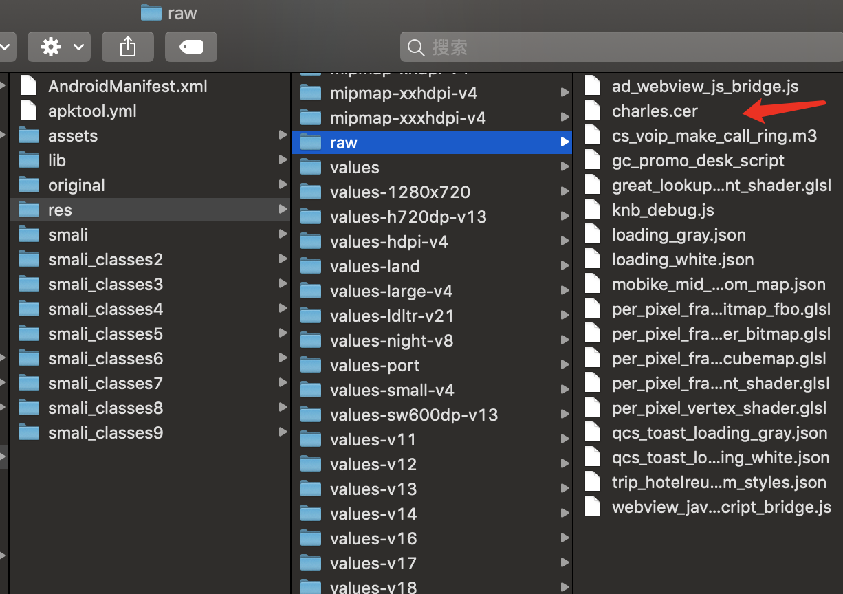 然后将charles.cer证书放入到raw目录下