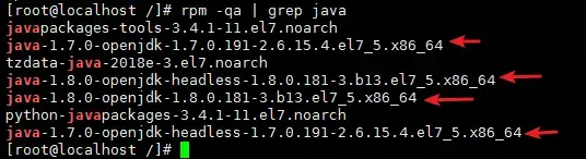 rpm -qa|grep java