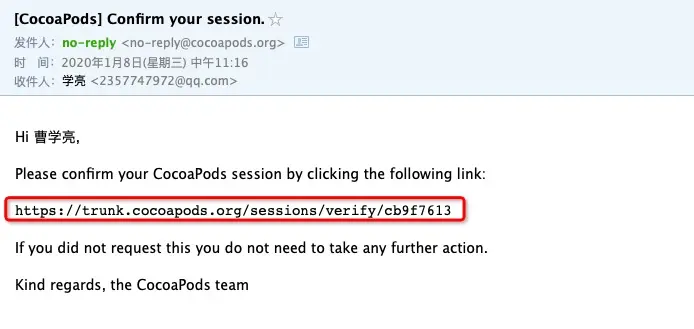 注册后邮箱会收到确认邮件,点击链接进行确认。如下所示: