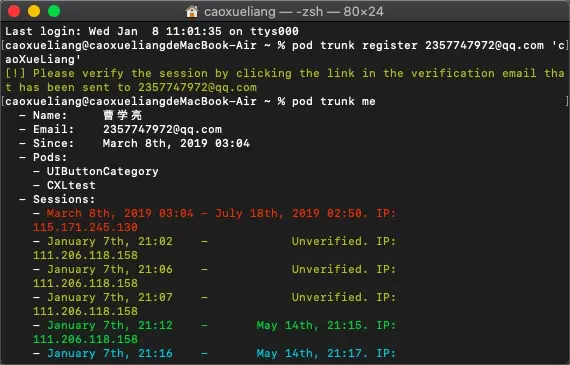 pod trunk register 2357747972@qq.com 'caoXueLiang'