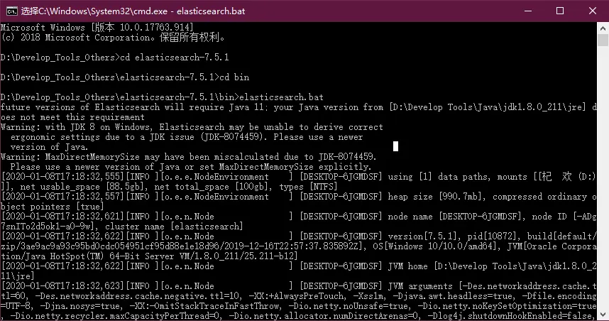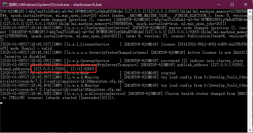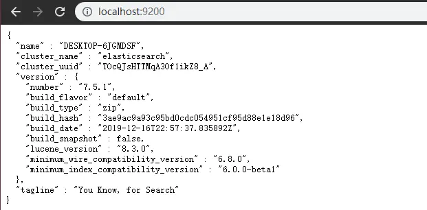 - 进入解压目录elasticsearch-7.5.1,进入bin目录,双击elasticsearch.bat即可启动