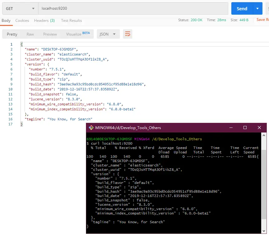 - 验证启动成功,直接在浏览器访问9200端口即可