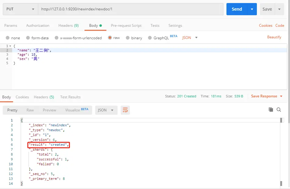 如:http://127.0.0.1:9200/newindex/newdoc/1