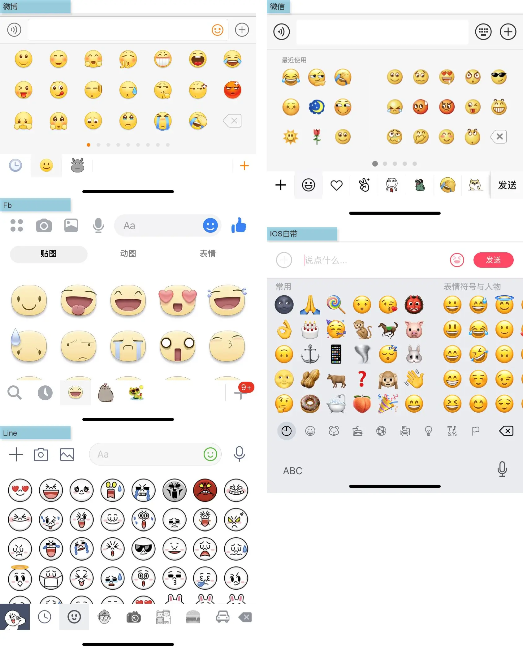 此外一般用户常用表情个数不会太多,给予全屏分页的必要性也没那么强。