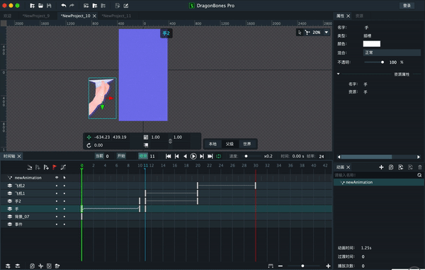 DragonBones工具,点击创建项目 - 选择补间动画,点击创建