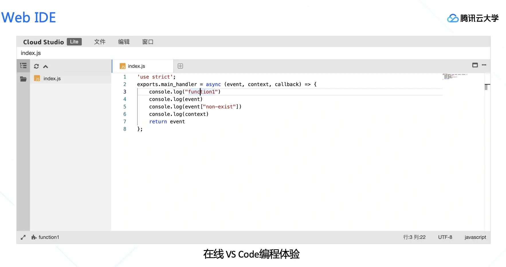 除了上述两种工具以外,腾讯云还与Coding合作推出了云端的WebIDE,方便更直观的查看线上的代码。