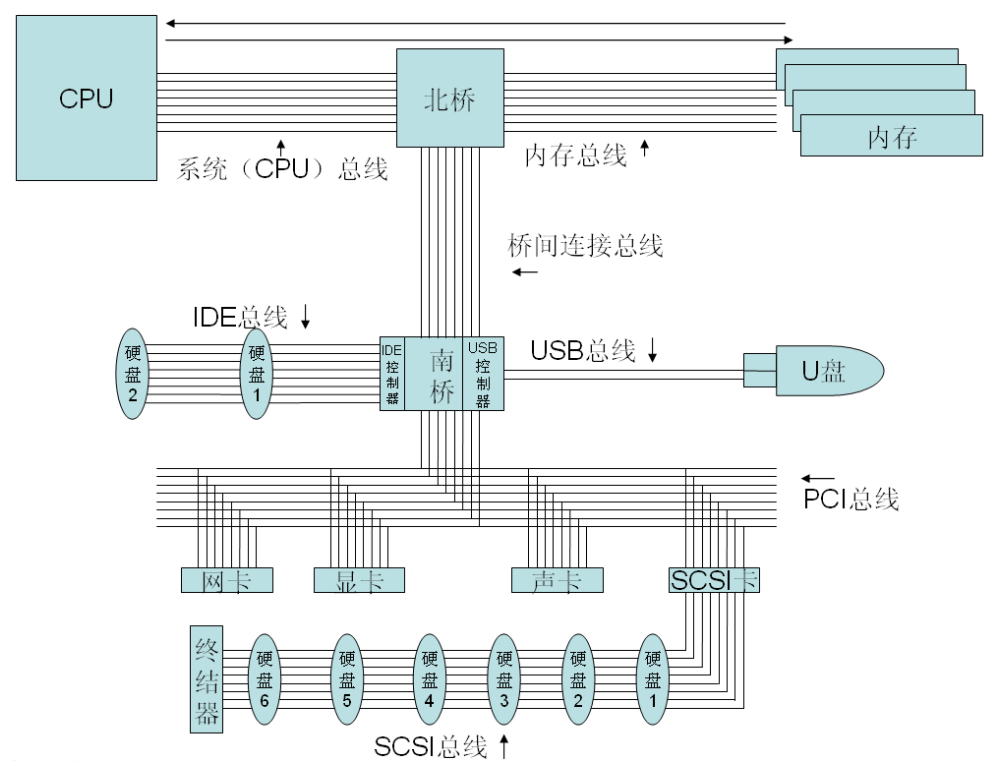现代计算机系统因为高速设备和低速设备的运行任务的速度差异的问题,一般会有南北桥,北桥是高速总线,就是CPU总线,内存总线等,南桥芯片负责接入一些非高速的总线,IO总线就在其中,而IO总线又有很多的具体的总线,PCI总线,PCIE总线,IDE总线,SCSI总线等等等等,这些总线的功能各不相同,那么这些多种多样的IO总线如何和于南桥芯片通信,信息如何传回CPU和内存进行处理,这些种类繁多IO总线都怎么来的,用途是啥,这里做个笔记。容易有理解错误的地方,写在这里方便跟进。