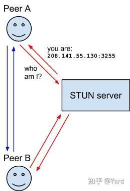 客户端通过给公网的 STUN 服务器发送请求获得自己的公网地址信息,以及是否能够穿过路由器访问。
