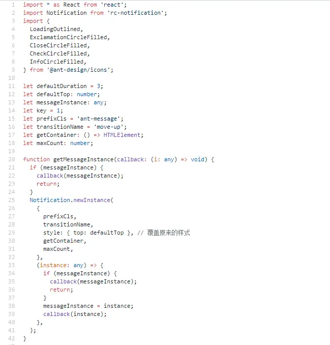 难点是我们不知道用户当前处于哪个页面,但是仔细一想,我们可以去参考一下Ant Design Message组件,所以我们上github看一下 Message源码:
