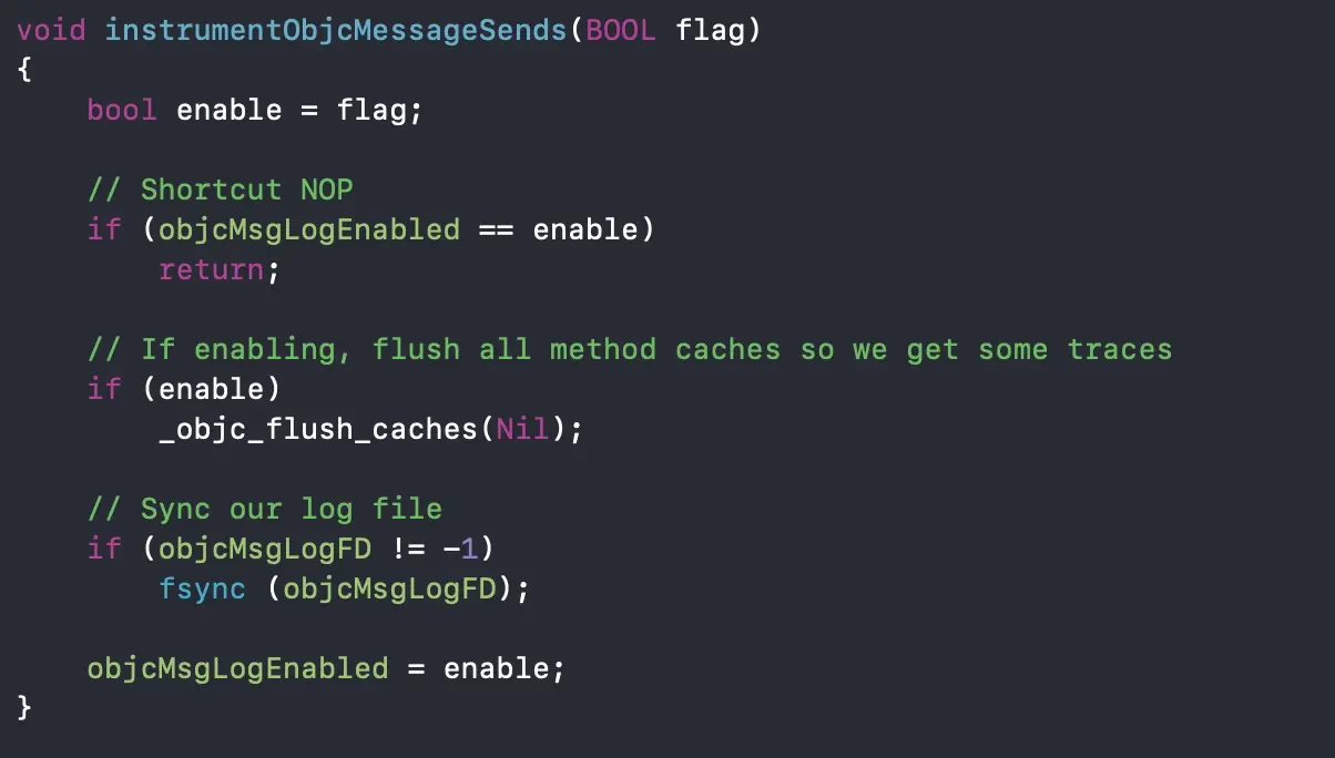 objcMsgLogEnabled的赋值是在instrumentObjcMessageSends之中,所以我们可以暴露这个方法,来达到外部打日志的操作