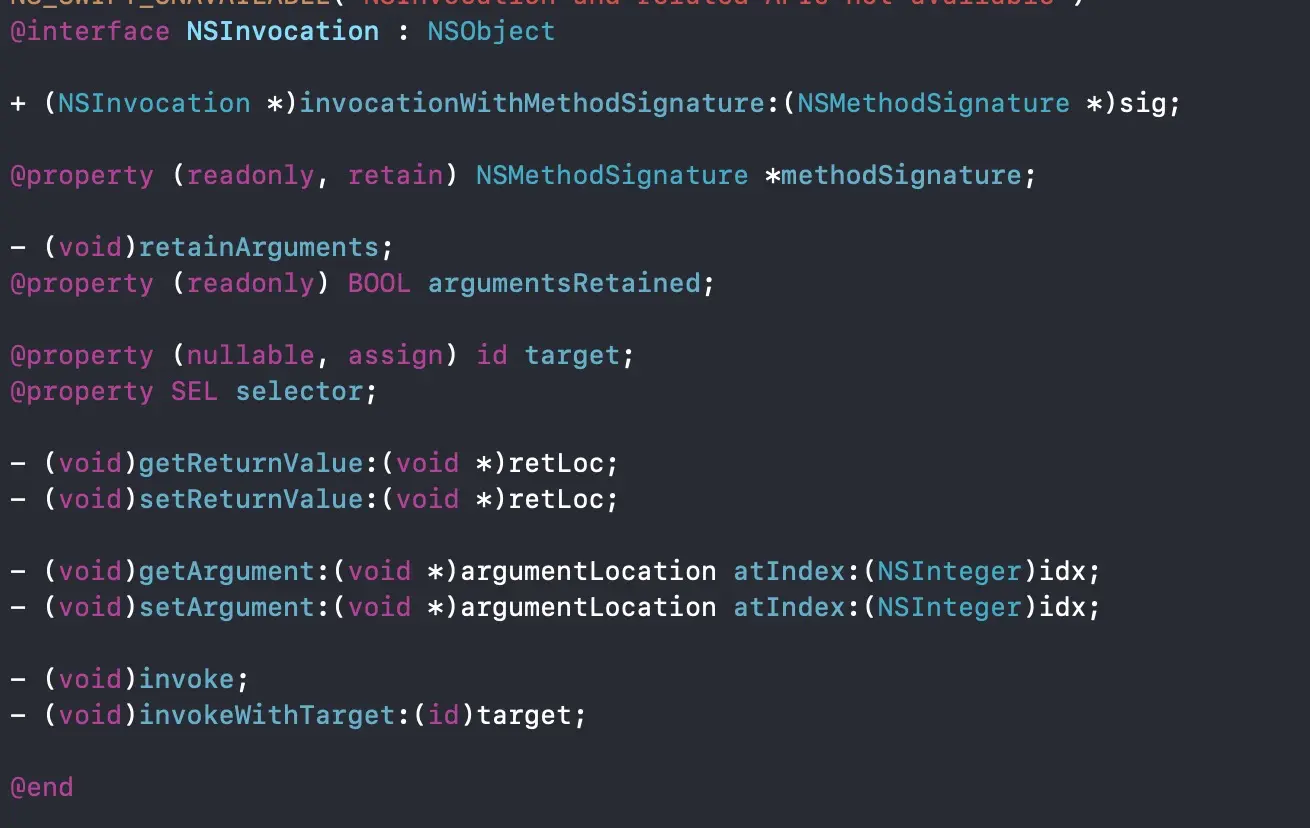 NSInvocation *invocation = [NSInvocation _invocationWithMethodSignature:methodSignature frame:frameStackPointer];