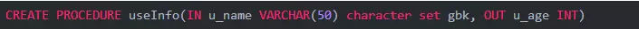 27.存储过程的参数可以使用中文吗? 一般情况下,可能会出现存储过程中传入中文参数的情况,例如某个存储过程根据用户的 名字查找该用户的信息,传入的参数值可能是中文。这时需要在定义存储过程的时候,在后面加 上character set gbk,不然调用存储过程使用中文参数会出错,比如定义userInfo存储过程,代码 如下: