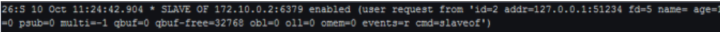 用于接受主节点发送的复制命令。从节点连接成功后打印如下日志: