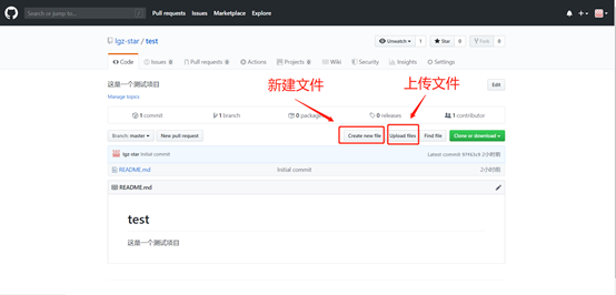 建立好仓库,我们在里面新建文件,也可以上传你自己的项目到仓库中