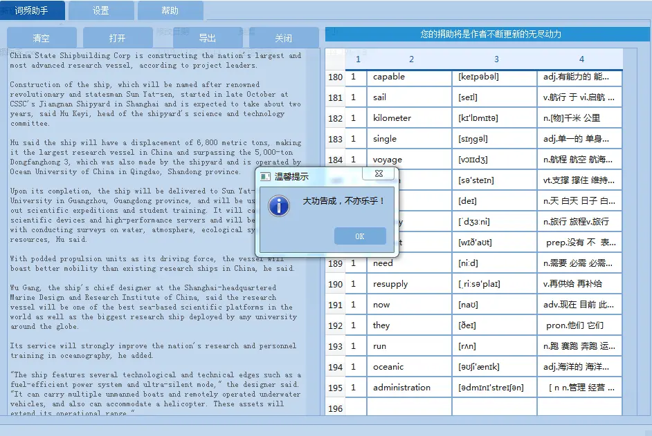1)英语单词文本中单词个数统计,标注 音标 和 翻译,并支持导出为Excel文件。