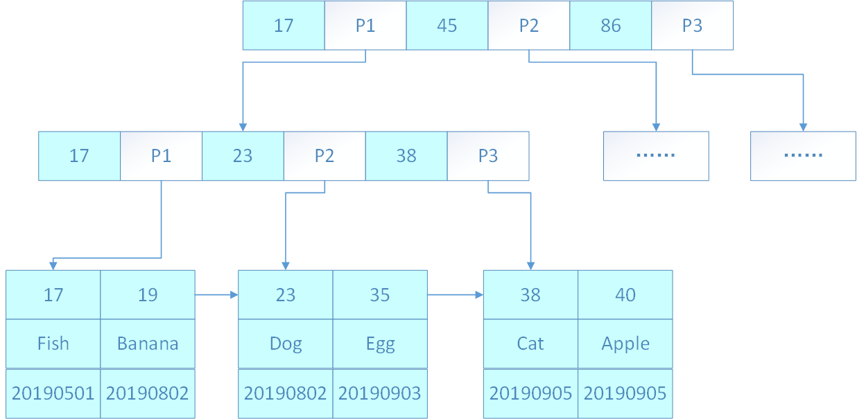 - 有了顺序访问的指针,可以方便获取某个范围内的数据,只需先找到两个端点,然后利用指针在节点间遍历即可;