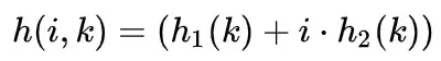 - 在循环中实际上应用了双重哈希(double hashing)的思想,即可以用两个哈希函数来模拟k个,其中i为步长:
