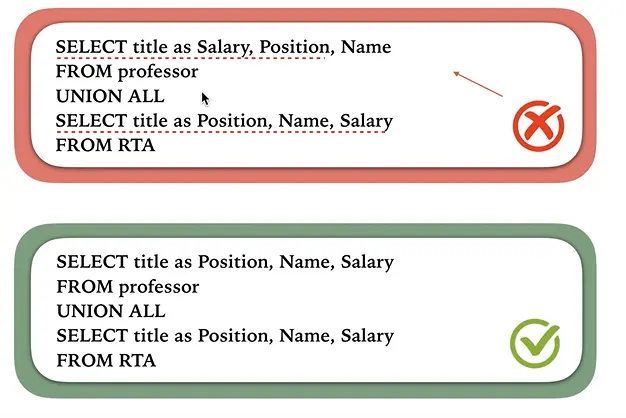 - Union 告诉SQL来合并两个或多个SELECT语句的结果