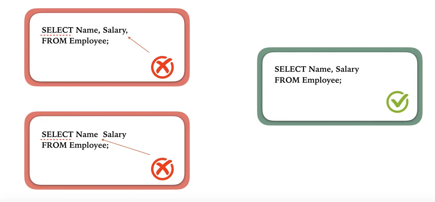 - SELECT和FROM是SQL query语句中必须包含的