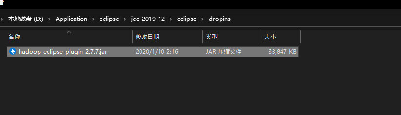 1.在eclipse中添加hadoop的插件hadoop-eclipse-plugin-2.7.7.jar