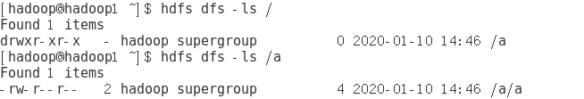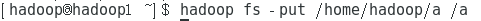 hadoop fs -put /home/hadoop/a /a