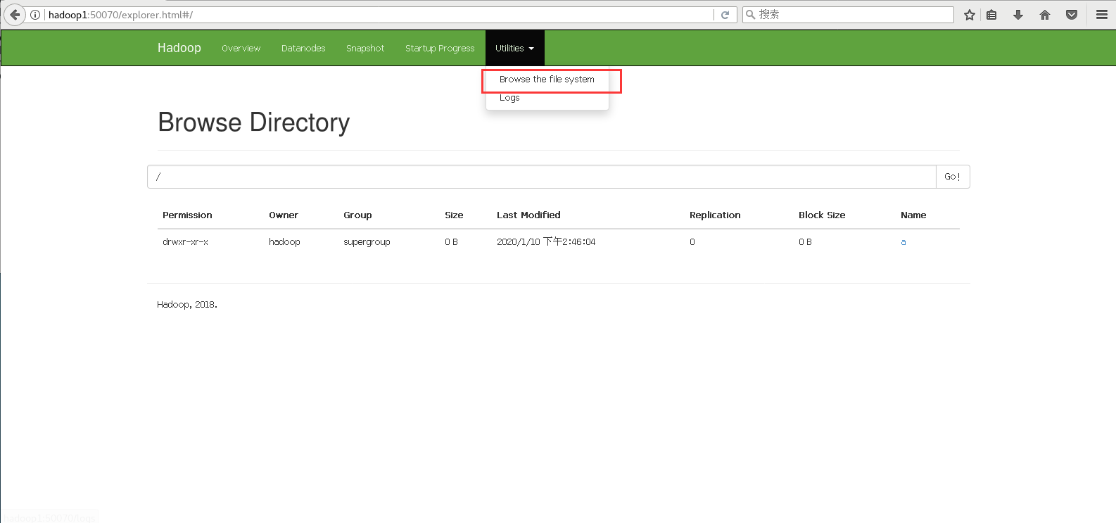 2.HDFS创建一个文件夹,命名为a