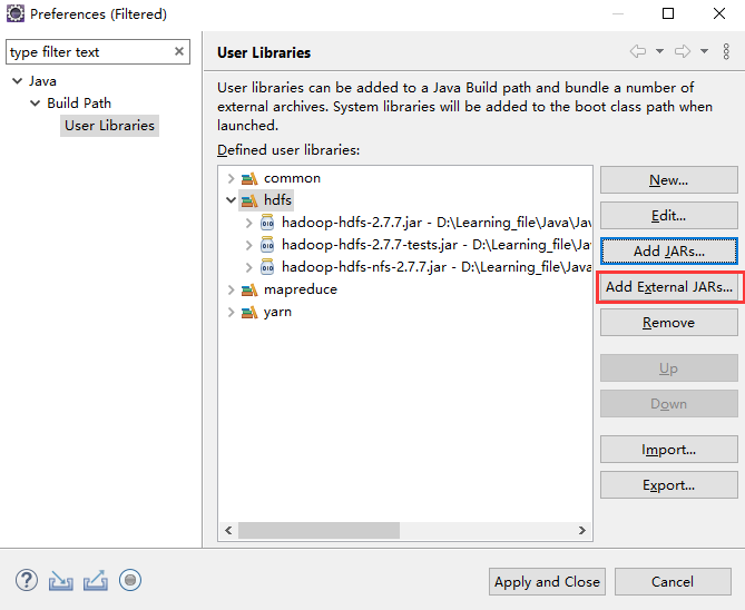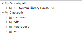 创建一个项目,在build path中导入以下文件,路径hadoop-2.7.7\share\hadoop