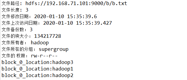 System.out.println("文件的块大小: "+listStatus[i].getBlockSize());