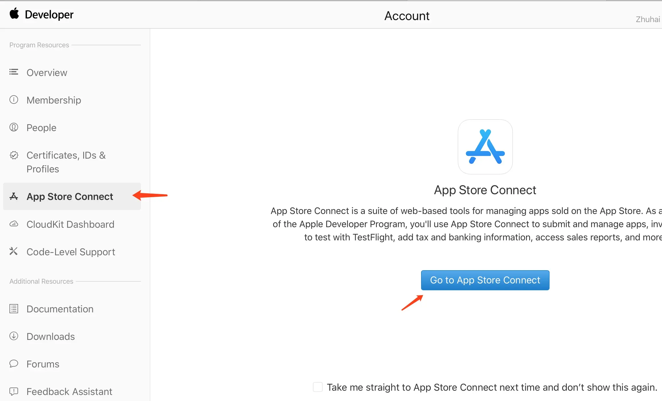 通过登录 developer.apple.com 网站,在 Account 的 Certificates,IDs & Profiles 可以找到你应用的信息,同时在 App Store Connect 栏目可以前往 appstoreconnect.apple.com 。