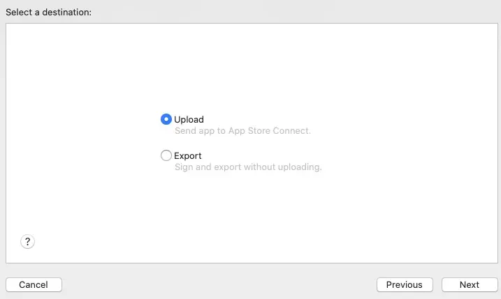之后如下所示,就选择上传 App Store Connect 进行提交准备。