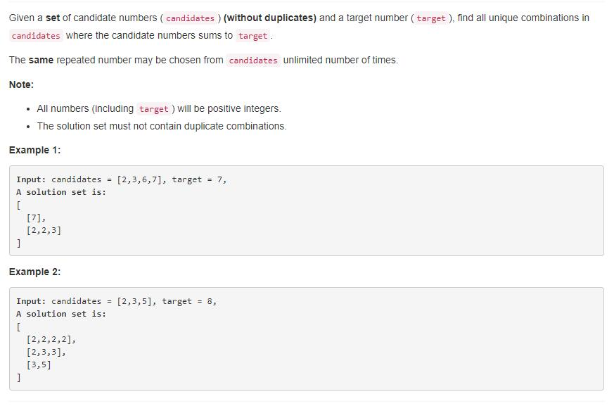 给几个数字,一个目标值,输出所有和等于目标值的组合。