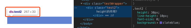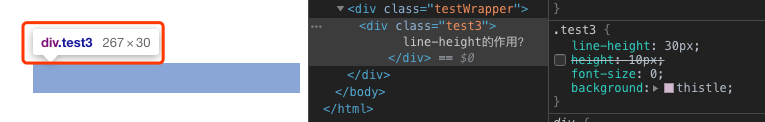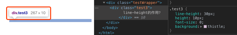 通过上面的比较font-size改变的只是文字的大小,而文字的大小是不会撑开dom节点的高度。实现高度效果的是两个常用的属性两个css属性height和line-height,当标签同时存在height和line-height的时候,最后的高度是由height所决定的。对于line-heihgt来说,它会影响line boxes的高度