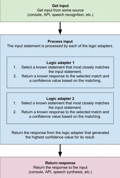 大家已经知道chatterbot的聊天逻辑和输入输出以及存储,是由各种adapter来限定的,我们先看看流程图,一会再一起看点例子,看看怎么用。