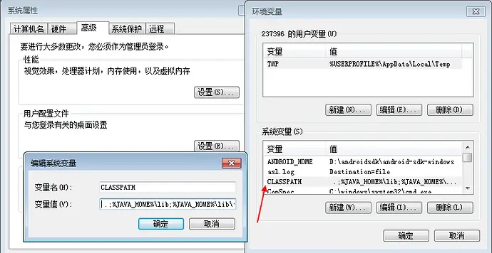 (2)CLASSPATH--- .;%JAVA_HOME%\lib;%JAVA_HOME%\lib\tools.jar;