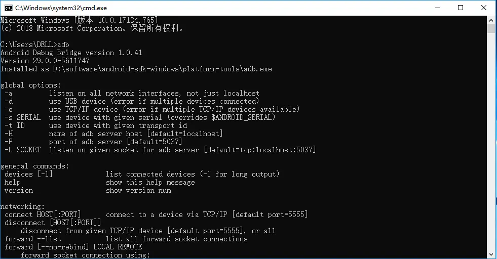 2.在cmd输入adb可以查看对应版本号