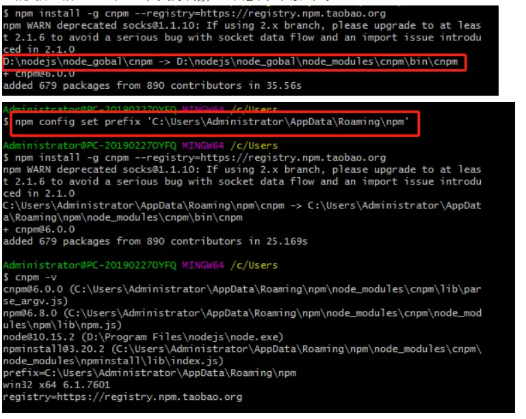 下载好nodejs后日常习惯用的cnpm不能安装成功。原因是改了默认路径且配了全局变量。默认的是C:\Users\Administrator\AppData\Roaming\npm。 但是有的时候路径不是默认路径。 可以通过 npm config set prefix ‘C:\Users\Administrator\AppData\Roaming\npm’ 改为默认路径;